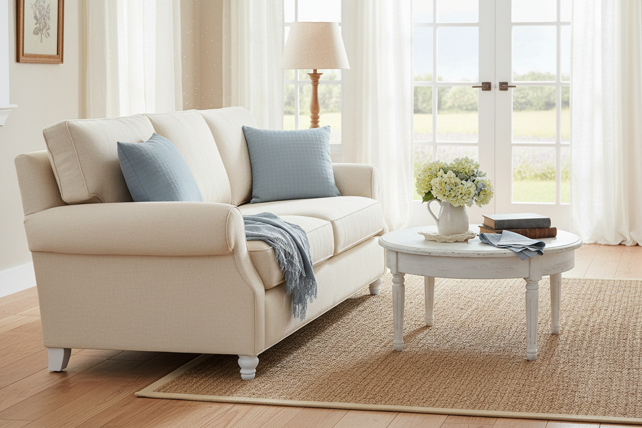 The contained French blue design evokes the gentle beauty of Provence and the Loire Valley, bringing a sense of rustic elegance and Old World charm into your home. The soft blue colorway pairs beautifully with whitewashed wood, natural linen, and vintage furnishings, creating an authentic French country aesthetic. Layer it with crisp white linens or warm neutrals for a classic provincial look, or mix with other soft blues and florals for a romantic, collected feel.