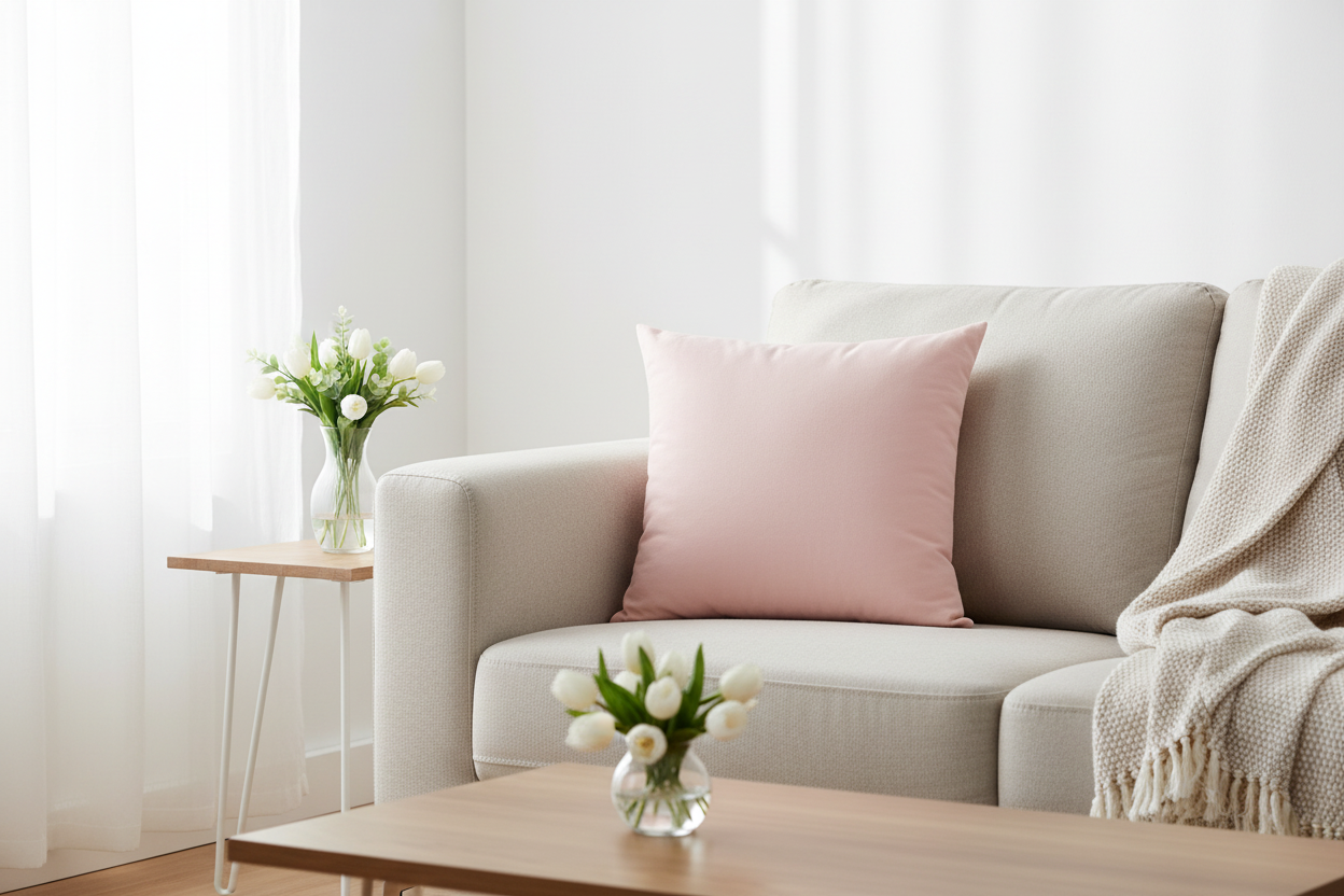 Add soft romance with this charming throw pillow in Kona cotton pink. The gentle solid fabric features a beautiful blush-pink tone that brings warmth and femininity to any room.