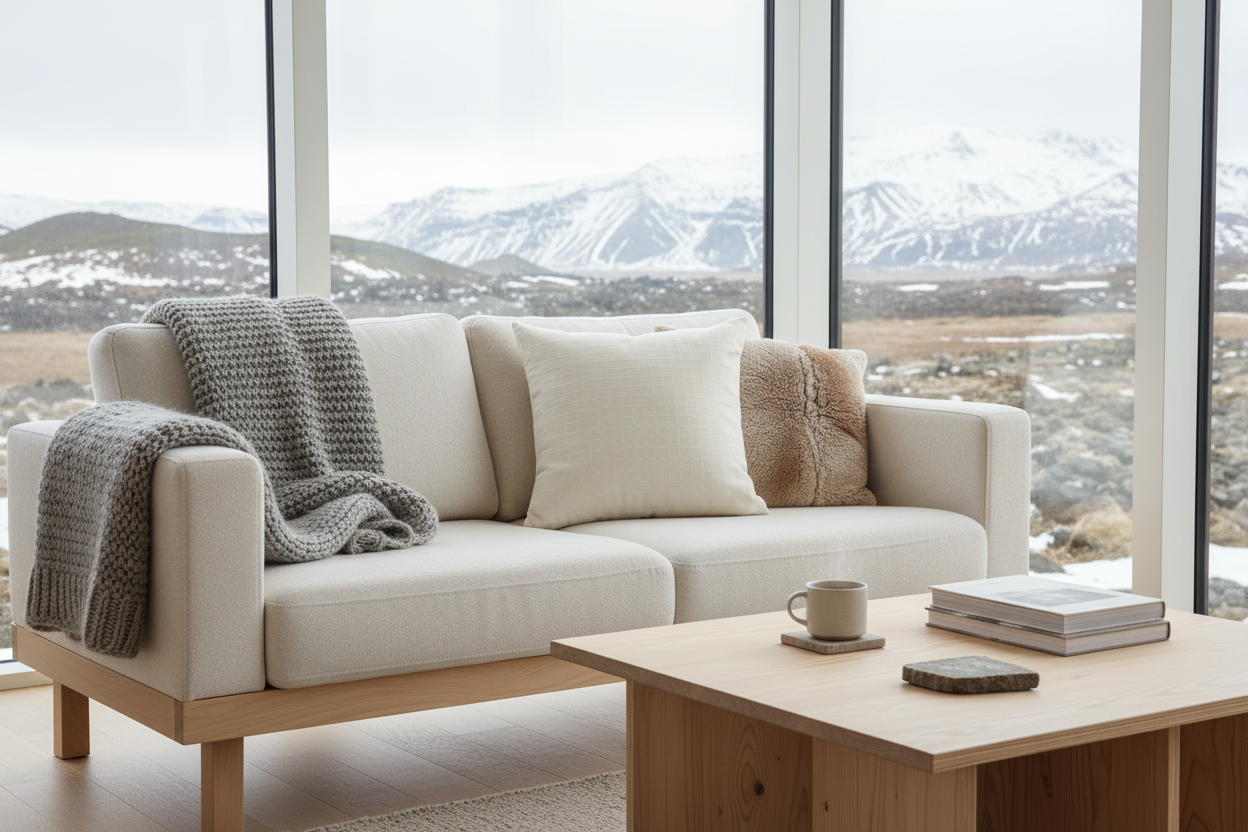 At 20x20", this generous square size makes a statement in Nordic interiors. The substantial size and refined pattern create a welcoming focal point on simple sofas and chairs - perfect for those who embrace the peaceful simplicity and natural beauty of Icelandic living.