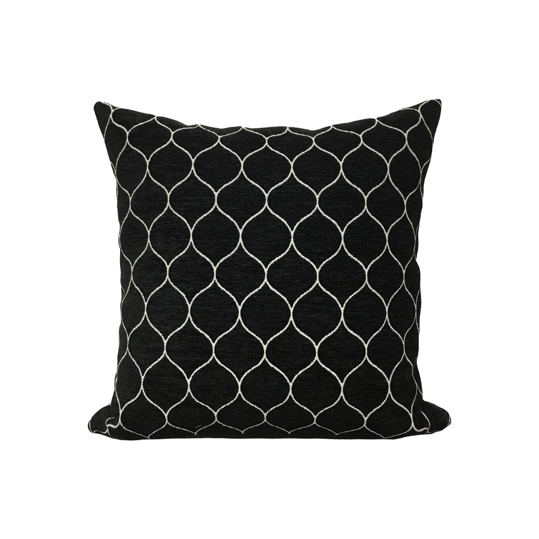 The Stella Onyx throw pillow brings bold contrast and timeless geometry to your space. With a deep black base and a soft chenille ogee overlay, it makes a dramatic yet refined statement.